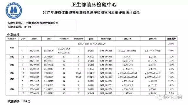 精科醫(yī)檢所再次一舉滿分通過了2017年首次全國腫瘤體細(xì)胞突變高通量測序檢測室間質(zhì)評,擊敗全國近半實(shí)驗(yàn)室。